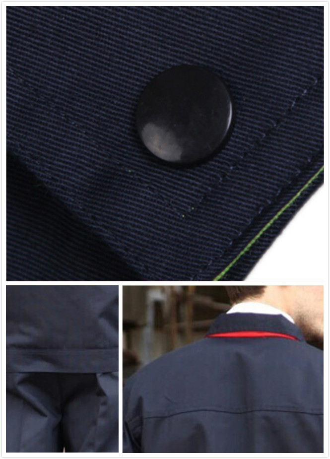 肩部:以往工作服肩部是平直的,現(xiàn)在改進(jìn)成西裝是的平滑肩,這樣可以使人穿的更舒服。