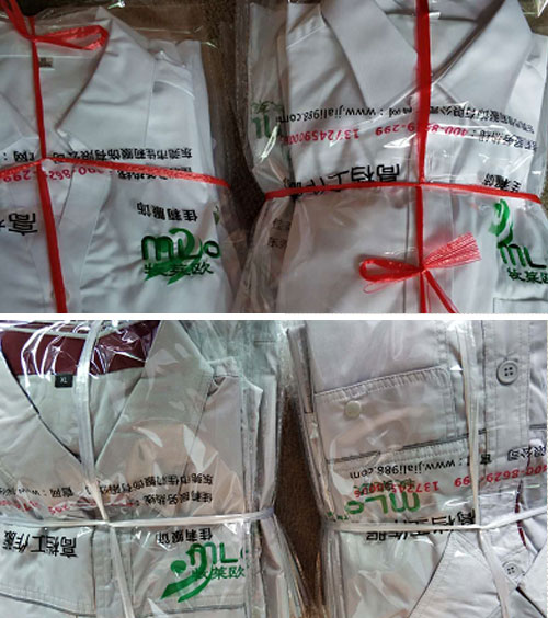 最后就是確定LOGO事宜,牧萊歐LOGO前面是采用刺繡工藝,考慮夏天衣服穿著舒適度的問題,后面就用了絲印工藝。經過一周時間的制作,佳莉為牧萊歐全屋定制送去了新的夏季工作服,看到員工們穿著合身的工作服,精氣神十足,企業(yè)形象明顯提升!