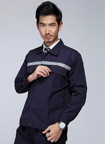 JL-QD263高.檔工作服以藏藍(lán)色為主色,胸前采用淺灰色撞色拼接,走線細(xì)致,實(shí)用性強(qiáng)。左中腰間口袋均采用雙層設(shè)計(jì),傾斜線條,穩(wěn)重大氣 走線細(xì)致,精細(xì)袖口,精致筆袋,夾克式下擺。