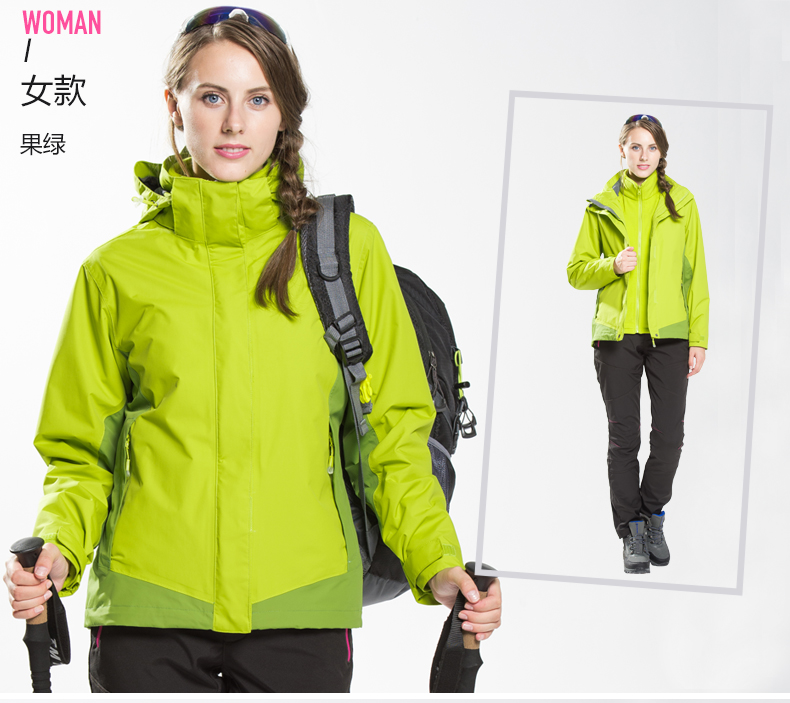 防風防雨,鎖溫保暖,腋下透氣網洞,3合1沖鋒衣,內膽可拆卸